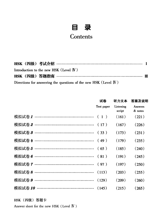 - Gồm 10 bộ đề thi mô phỏng được biên soạn bám sát đề thi HSK4 thật, giúp người học làm quen với cách ra đề và thời lượng làm bài HSK4.
